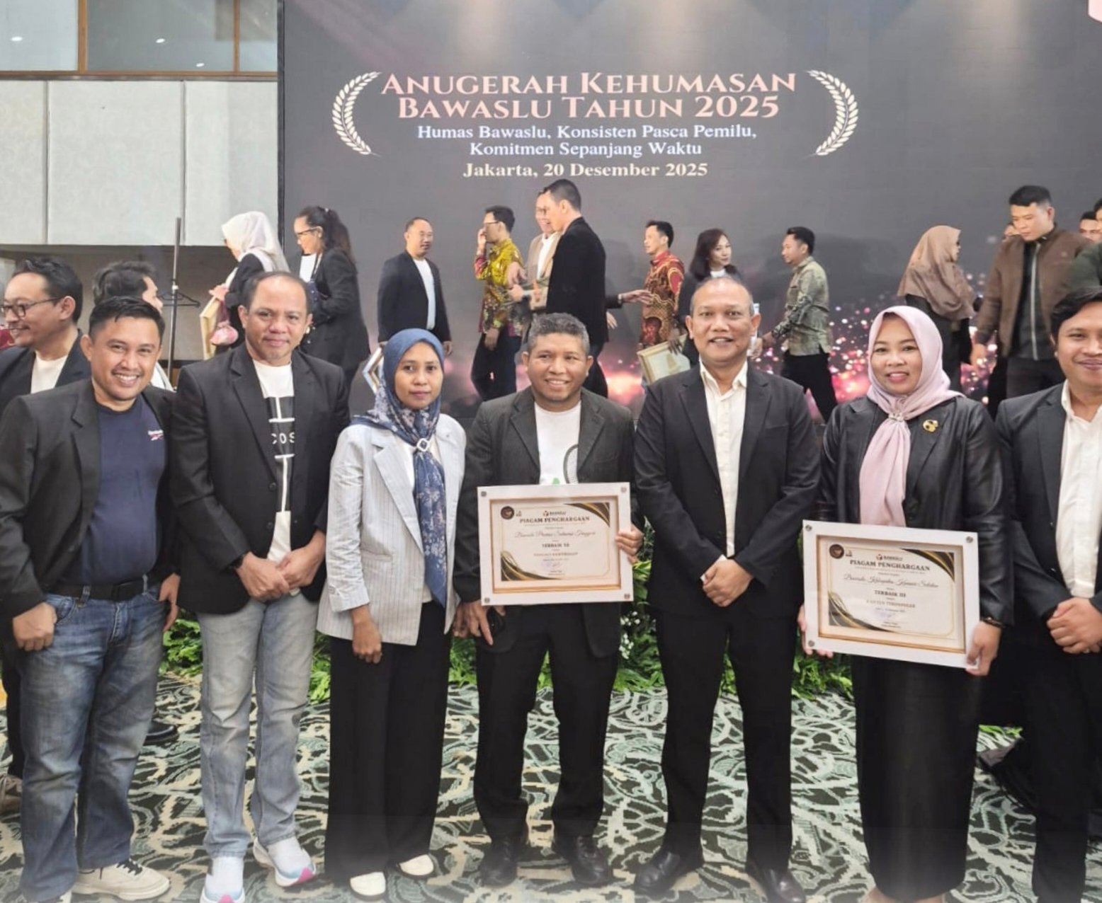 Apresiasi kinerja kehumasan diterima langsung oleh Anggota Bawaslu Konsel, Hasni S.Pi M.H yang diberikan oleh Bawaslu RI di Jakarta, Sabtu (20/12/2025) malam.