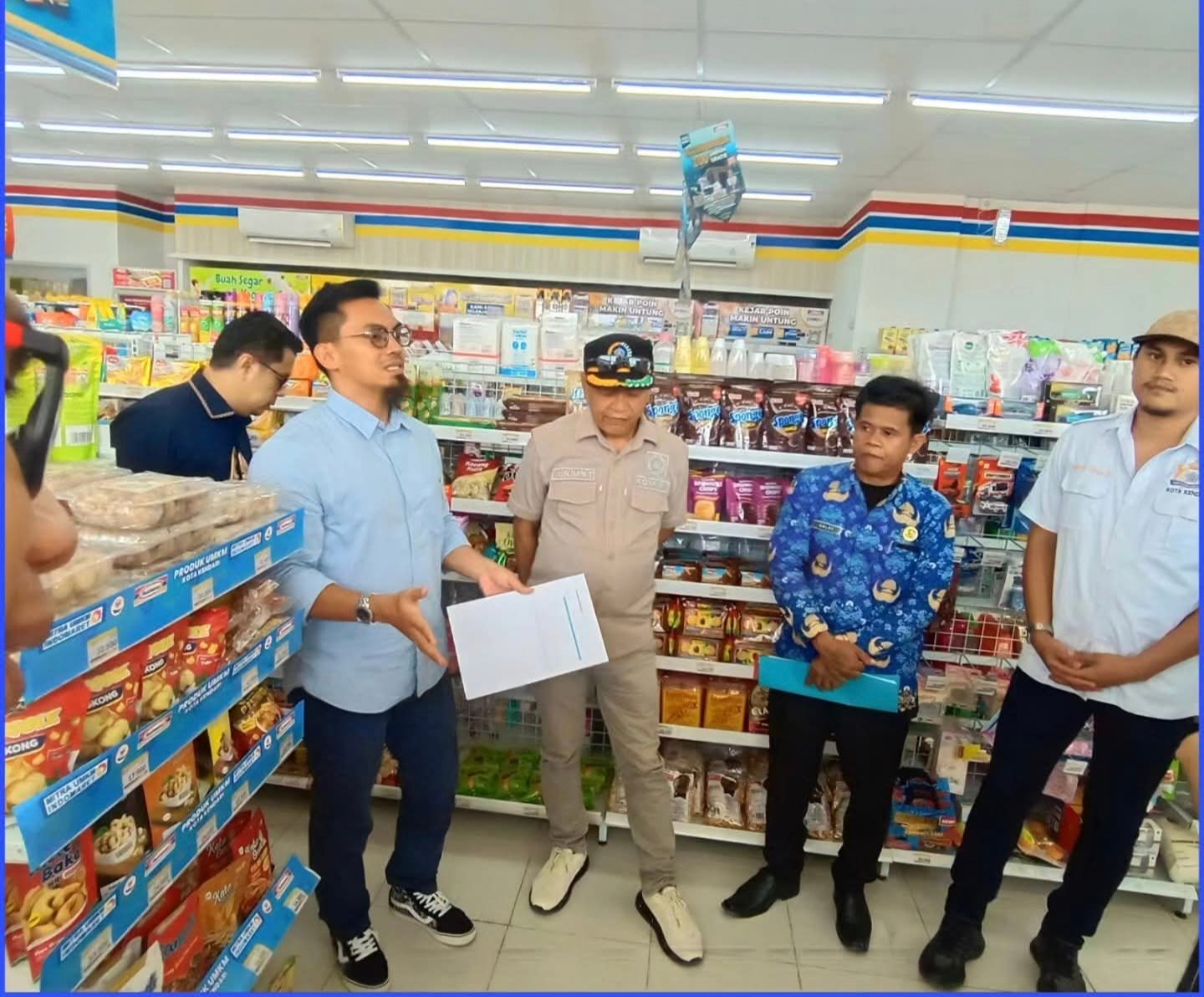 Tim gabungan melakukan pengecekan secara detail terhadap berbagai aspek operasional gerai Indomaret, mulai dari kelengkapan izin, ketersediaan produk lokal, hingga komposisi tenaga kerja.