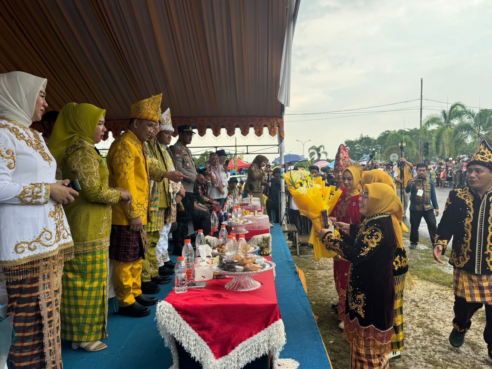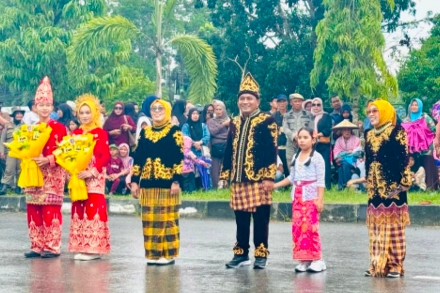 Dipanggung kehormatan Bupati Konawe Selatan, Irham Kalenggo S.Sos M.Si, Wakil Bupati, Wahyu Ade Pratama Imran SH, Ketua Tim Penggerak (TP)-PKK, Nurlita Jaya AS S.Sos M.Kes, Wakil Ketua TP-PKK, dr Rizki Rahmadani Ahmad, unsur Forum Komunikasi Pimpinan Daerah (Forkopimda), menyambut barisan defile peserta Pawai Budaya.