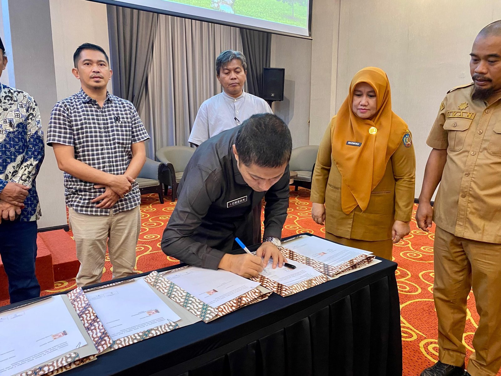 Penandatanganan tersebut diwakili oleh Sekretaris Daerah Kabupaten Konawe Selatan, H Ichsan Porosi ST M.Tp, didampingi Asisten I, Ivan Ardiansyah S.Stp serta Kepala Badan Keuangan dan Aset Daerah, Dr Hj. Marwiyah Tombili SE M.Sc, bersama perwakilan dari 13 universitas dan sekolah tinggi yang menjadi mitra kerja sama pemerintah daerah.