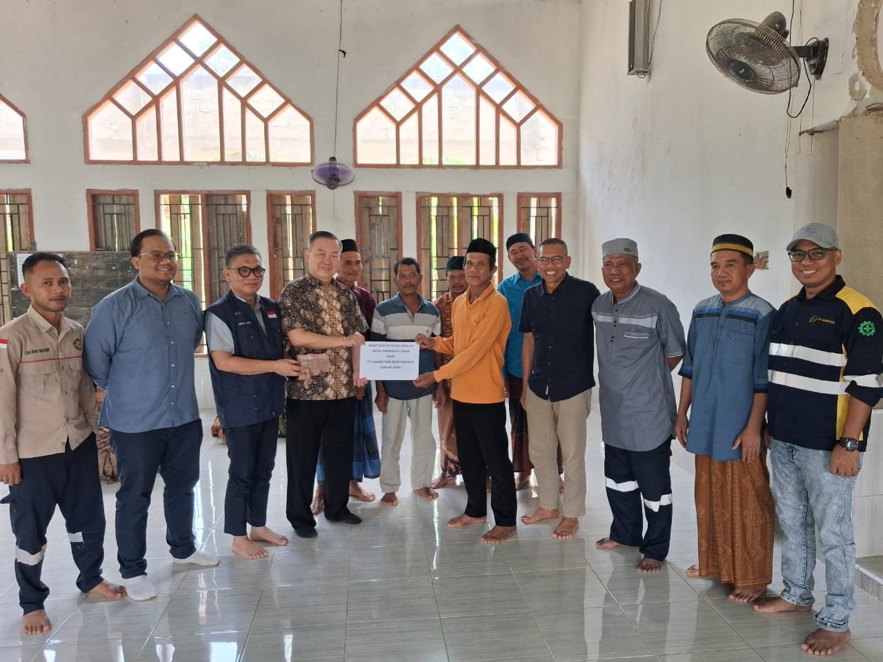 Penyerahan dana untuk pembangunan plafon Masjid tersebut diserahkan langsung oleh Direksi PT Hangtiang Nurcahaya, Leman Suti dan dihadiri sejumlah tokoh masyarakat Desa Meronga Raya, Selasa (10/03/2026).